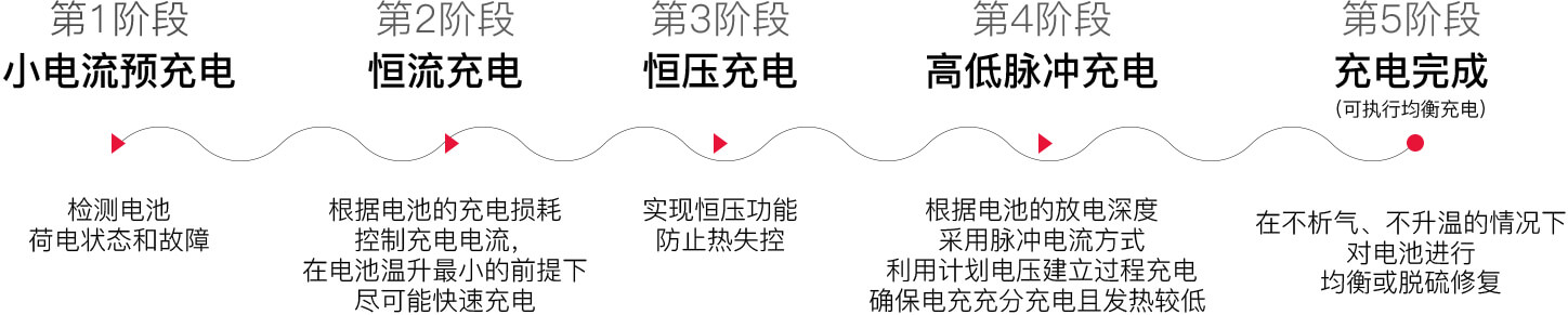 擁有充電曲線技術(shù)專利,五階段智能充電,快速高效穩(wěn)定